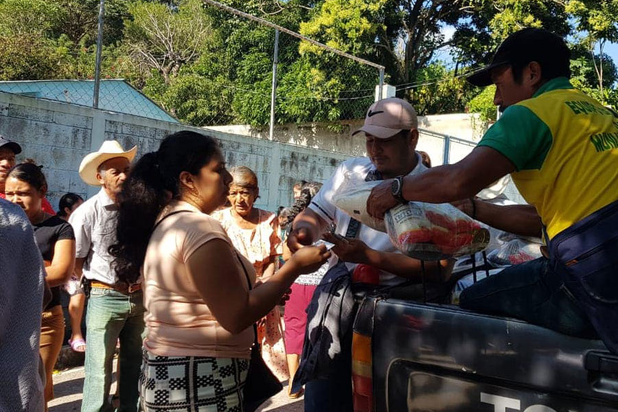 Entregando la segunda bolsa de víveres en Aldea el Amatillo