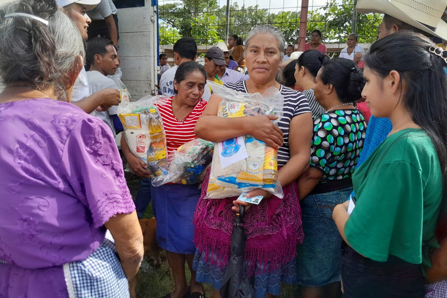 Entregando la segunda bolsa de víveres en Aldea el Amatillo